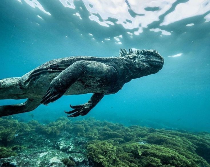 deniz iguanasısert ve görkemli vücudu, keskin pençeleri sayesinde akıntılı sularda rahatlıkla yüzer.